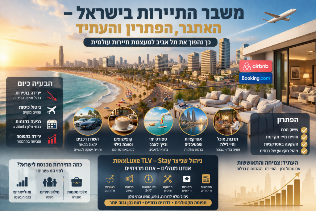 התיירות בישראל נפגעה משמעותית בעקבות המצב הביטחוני, מה שהוביל לירידה חדה בביקושים לבתי מלון ולדירות נופש. עם זאת, באמצעות אסטרטגיה נכונה, חוויית תייר מתקדמת וניהול מקצועי של נכסים, ניתן לא רק לשקם את התחום – אלא גם להביא לצמיחה משמעותית שתשפיע על כלכלת המדינה.